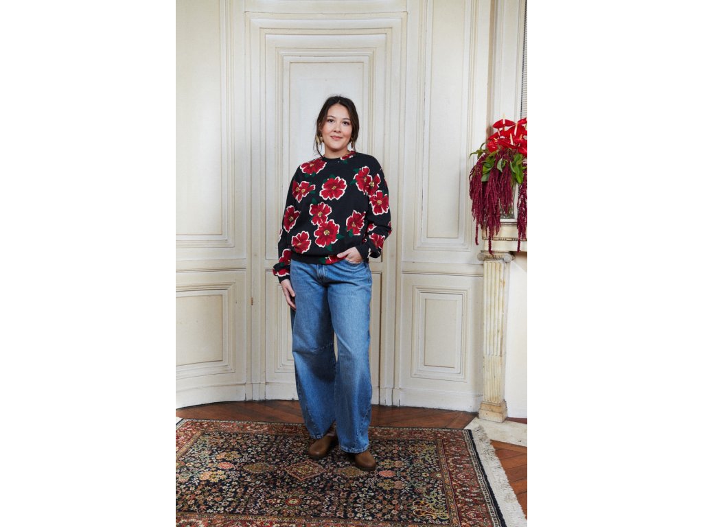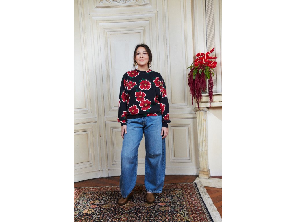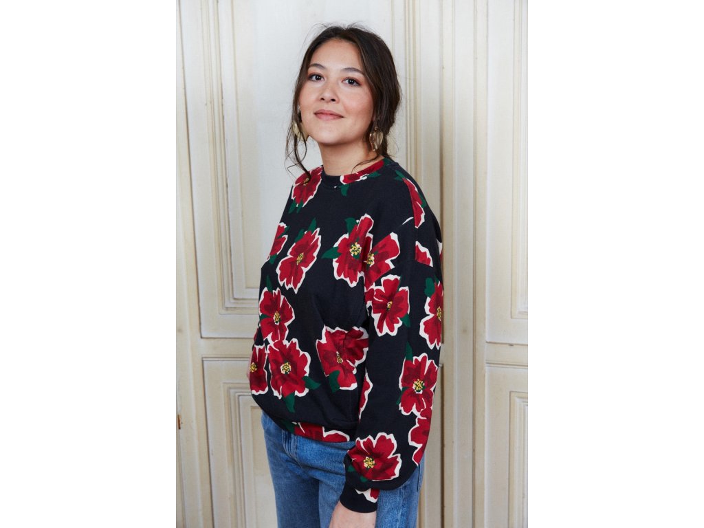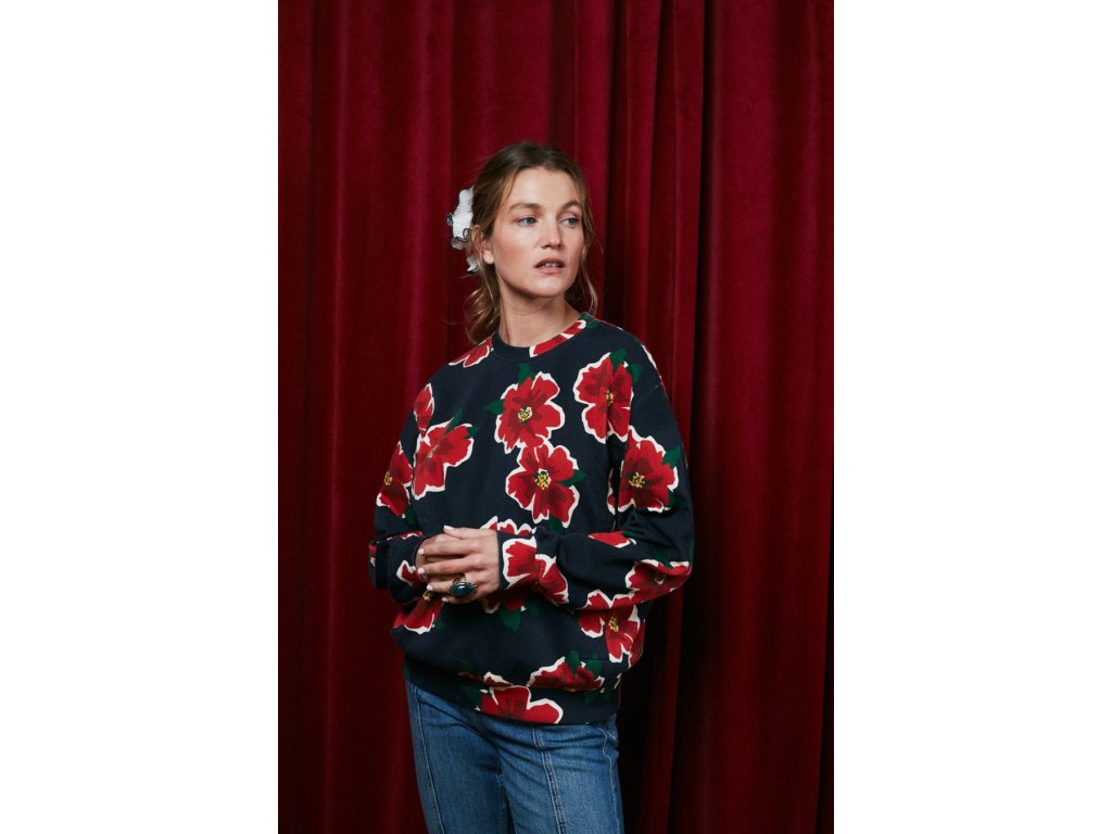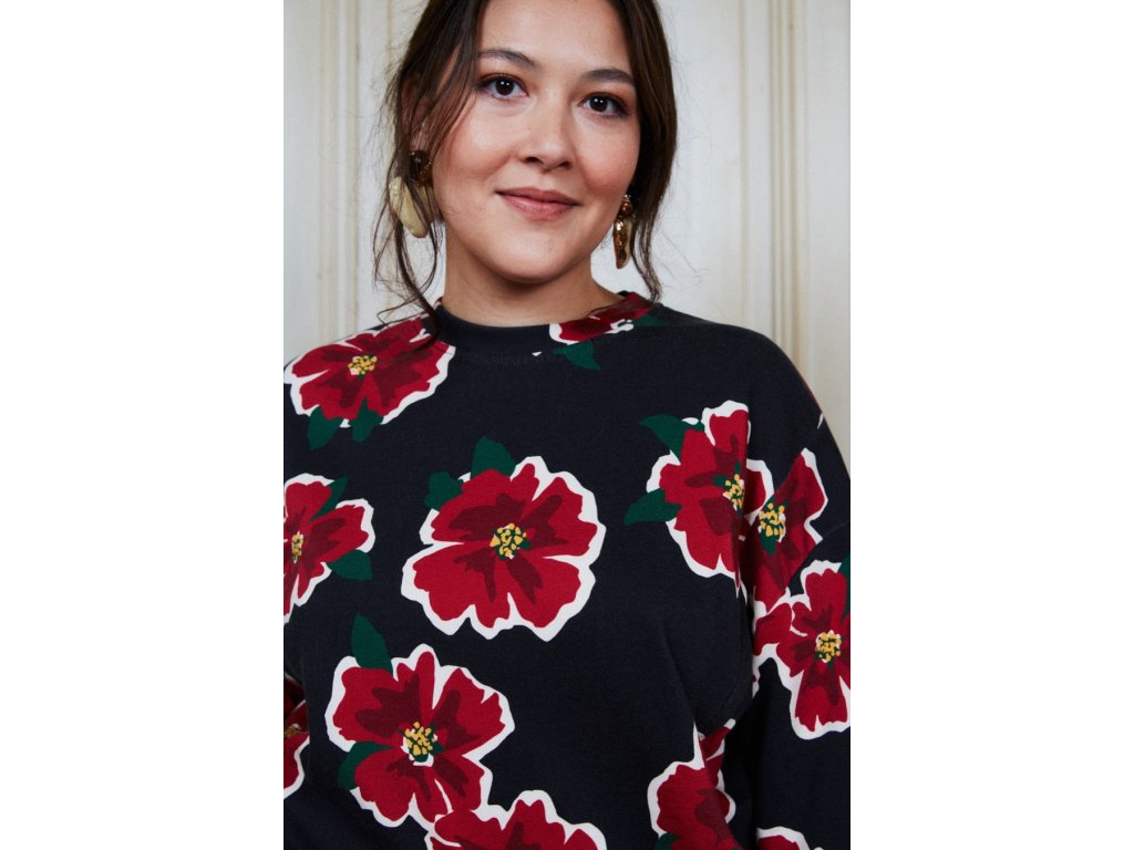 Elegantní kojicí mikina s květinovým vintage potiskem, která spojuje pohodlí s francouzským stylem. Měkký fleece, volný střih a nadčasová černá barva z ní dělají ideální kousek i pro slavnostnější chvíle.