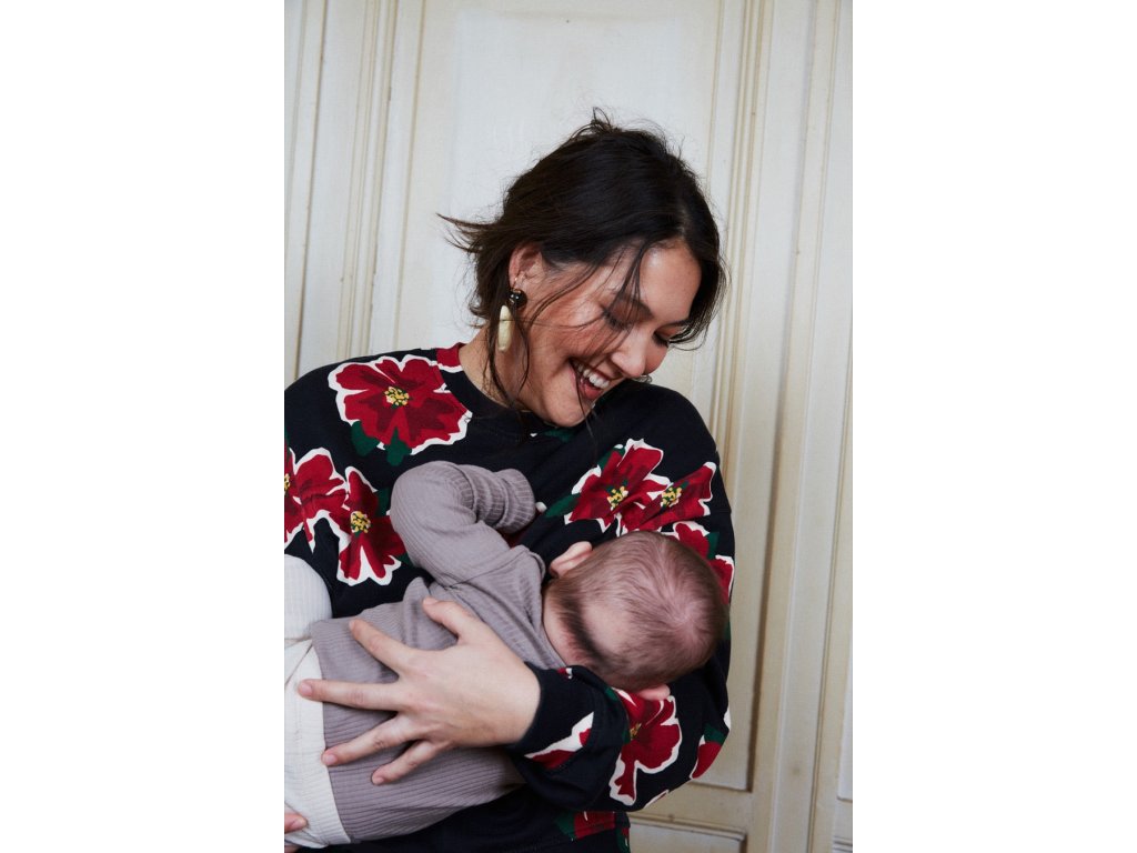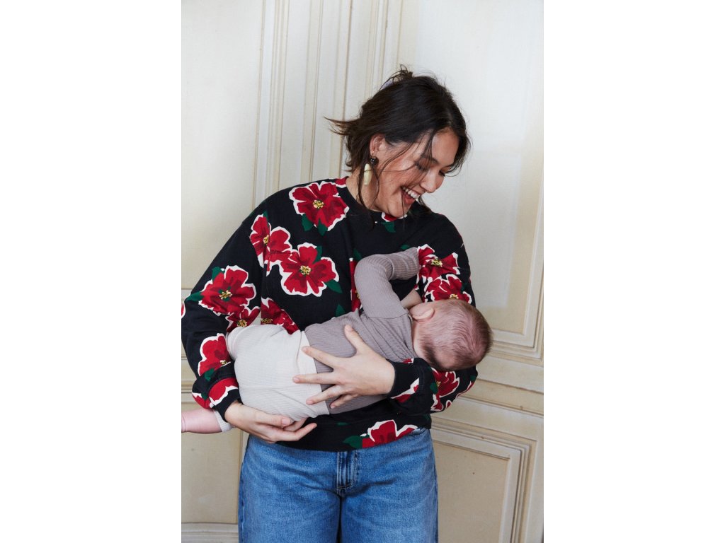 Donna je mikina, která posouvá pojem „kojicí oblečení“ na úplně novou úroveň. Elegantní květinový potisk v černém vintage tónu působí sofistikovaně, jemně a nadčasově – přesně tak, aby mikina fungovala nejen na běžné nošení, ale i na formálnější setkání.