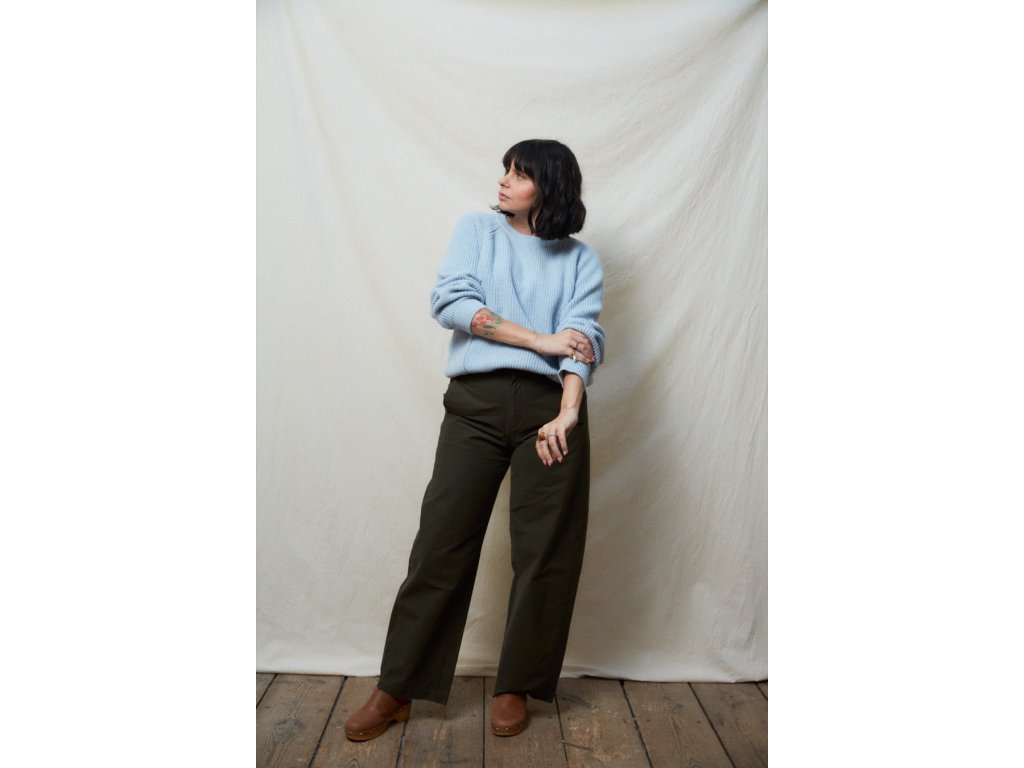 Ruční praní: Svetr namočte do malého množství studené vody s práškem na praní (ne na příliš dlouho). Nepoužívejte aviváž, nedrhněte a nekruťte výrobek při sušení. Předsušte svetr svinutím v suchém ručníku (pokud je velmi silný, postup opakujte). Položte svetr naplocho na šňůru na prádlo a vyvarujte se zavěšení na věšáky, aby nedošlo k deformaci látky.