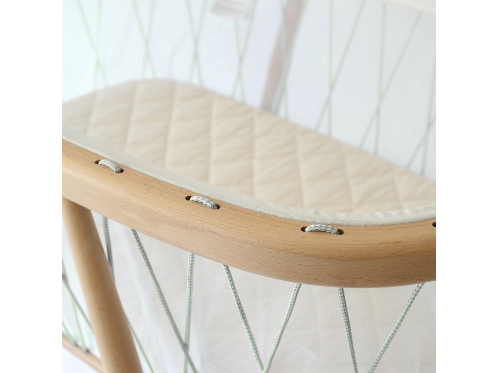 Design KUMI spojuje tradici a modernost. Zachovává tradiční kolébku s jemným pohybem, který pomáhá dětem usnout, a zároveň načrtává minimalistické a moderní linie, zejména díky šňůrkám, které ji obklopují, což jí dodává lehkost i bezpečnost.