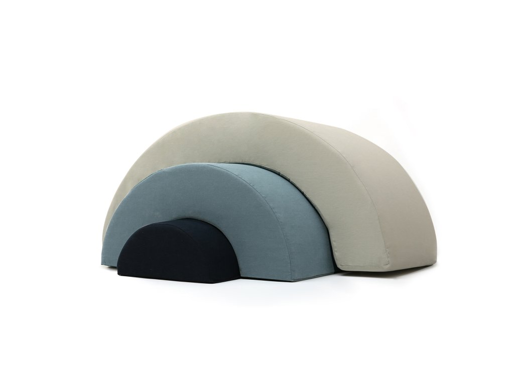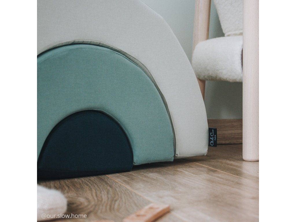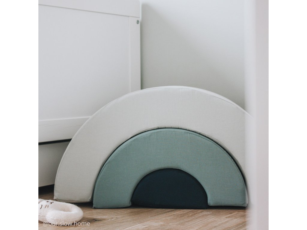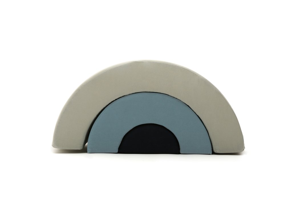 Krásná dekorace do pokojíčku, stejně jako hračka. Nový hrací set se skládá se ze tří polštářů ve tvaru půlměsíce, které do sebe zapadají a vytvářejí hravou poetickou duhu. Lze jej použít jako puf, chýši, tunel nebo dokonce stavebnici. 3, 2, 1 ... Hrajte si!