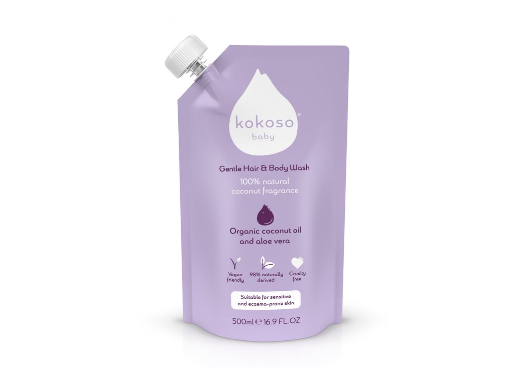 - Doplňuje 2,5 lahvičky Kokoso Baby Jemného mycího gelu na vlasy a tělo