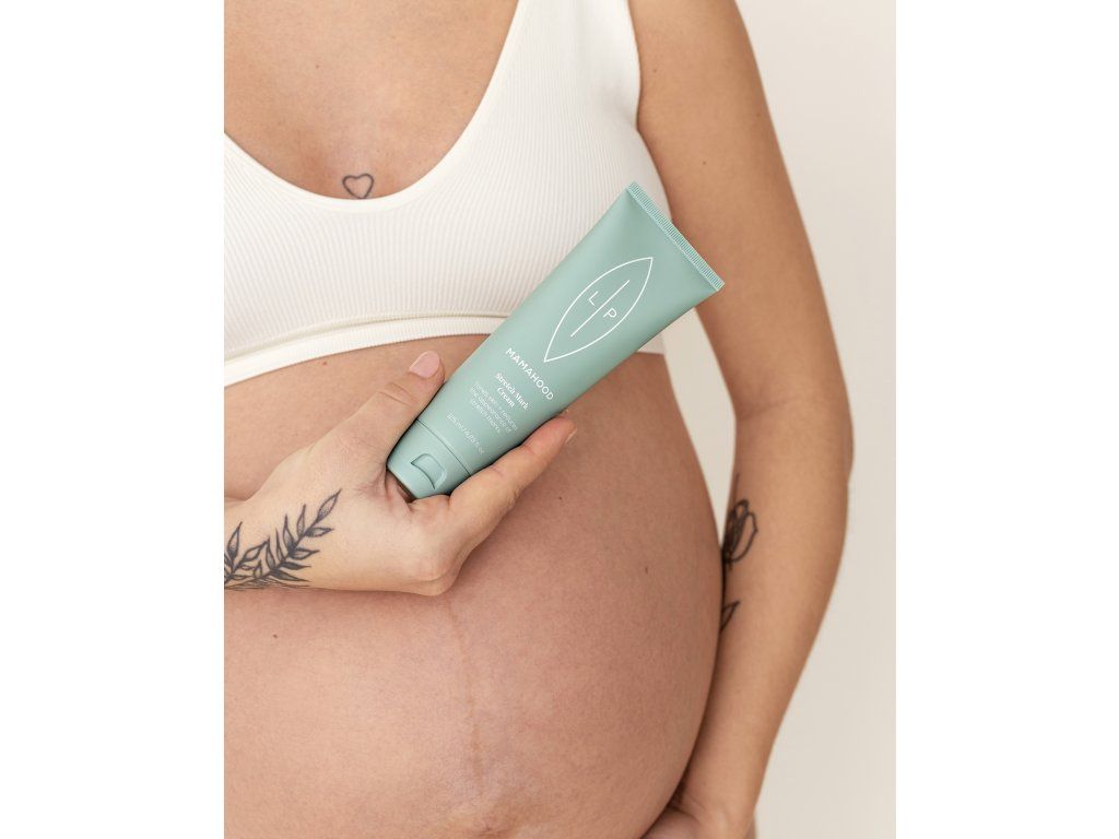 Je ideální pro oblast břicha, boků, stehen i prsou – tedy tam, kde pokožka během těhotenství prochází největší změnou.