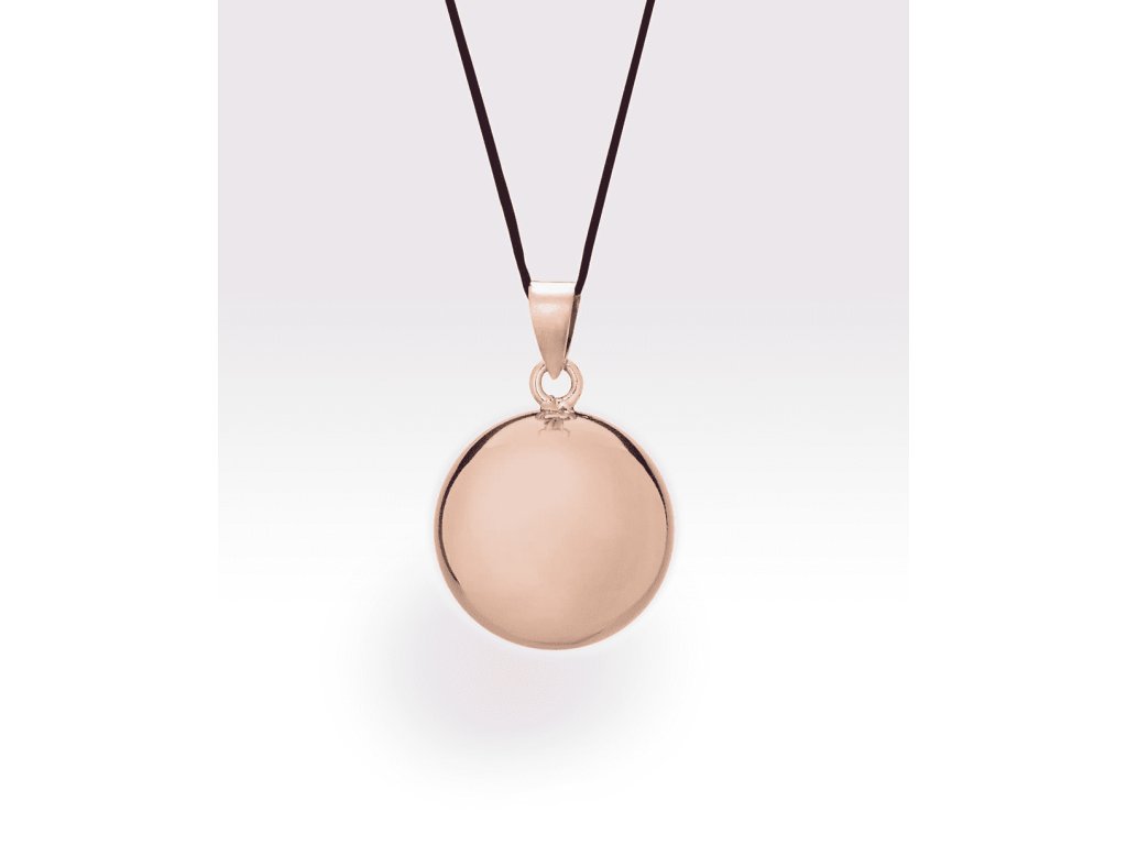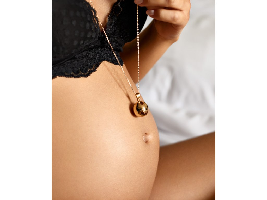 Těhotenská bola Glossy Růžové zlato je vyrobena z mosazi a pozlacená růžovým zlatem. Bola vydává uklidňující zvuk, který miminko vnímá od 20. týdne těhotenství a který mu navozuje pocit harmonie.