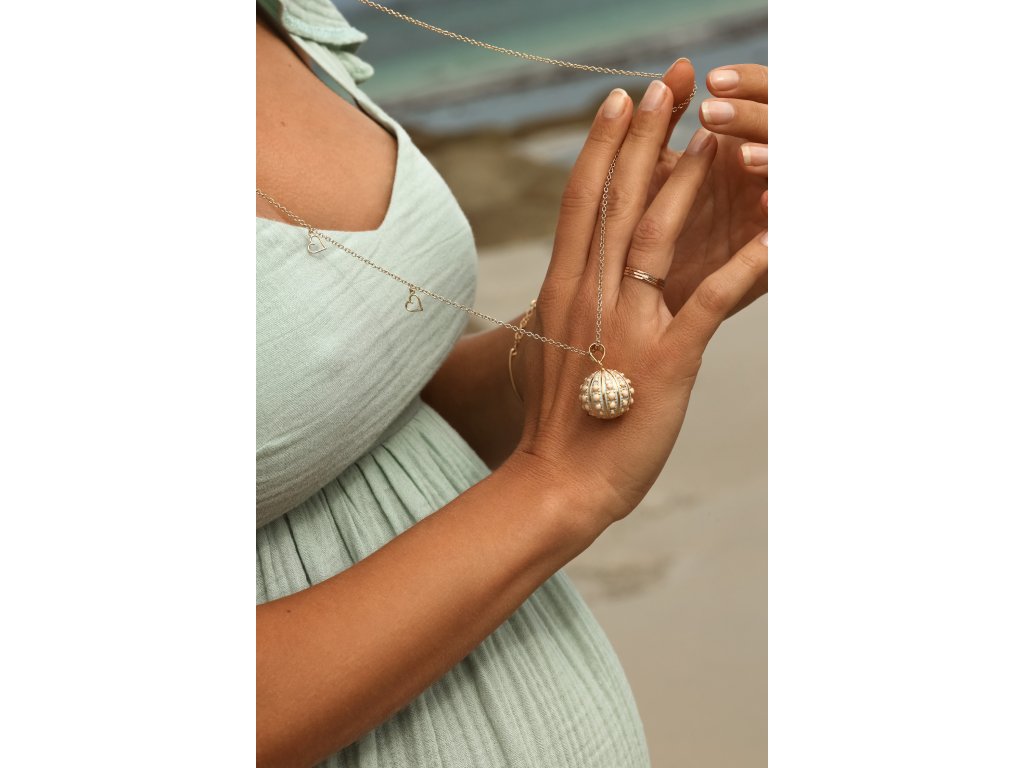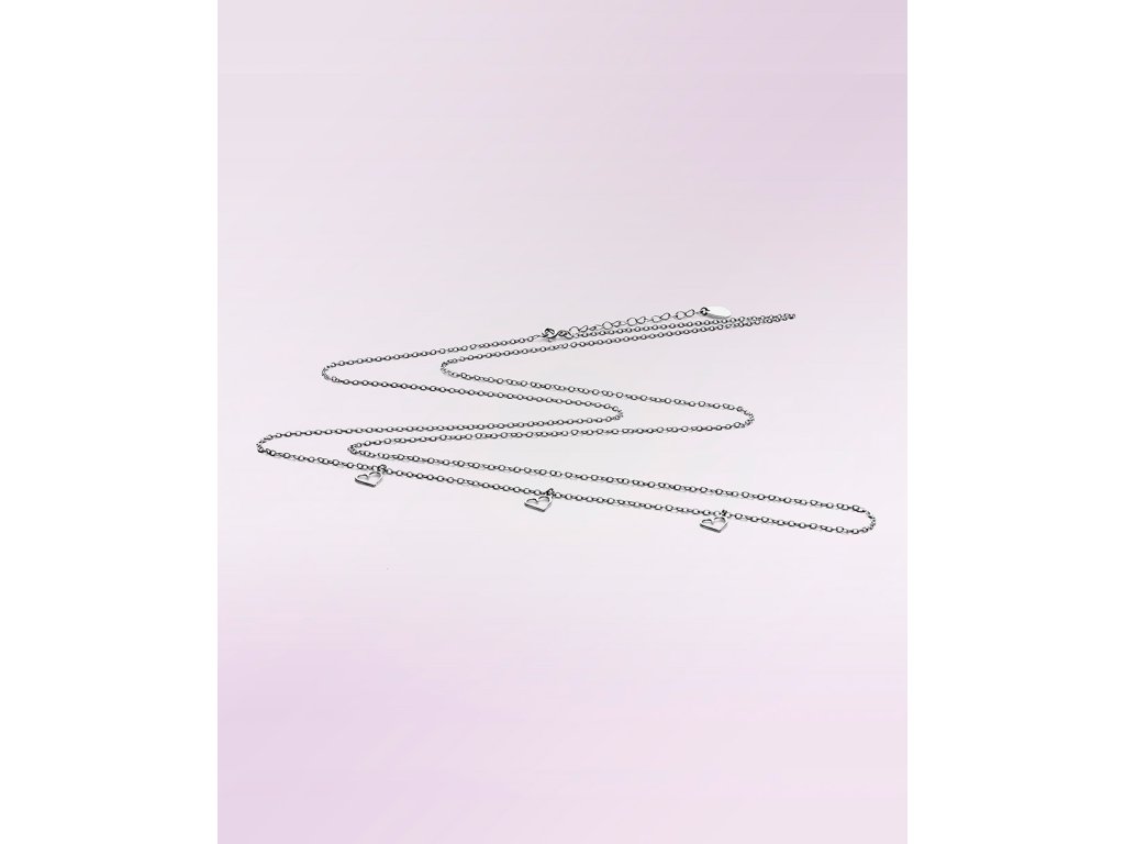 Řetízek má délku 110 cm a je nastavitelný o dalších 10 cm, takže si jej můžete přizpůsobit podle sebe. Na jedné straně je ozdoben třemi drobnými srdíčky – něžný detail, který symbolizuje lásku a propojení.