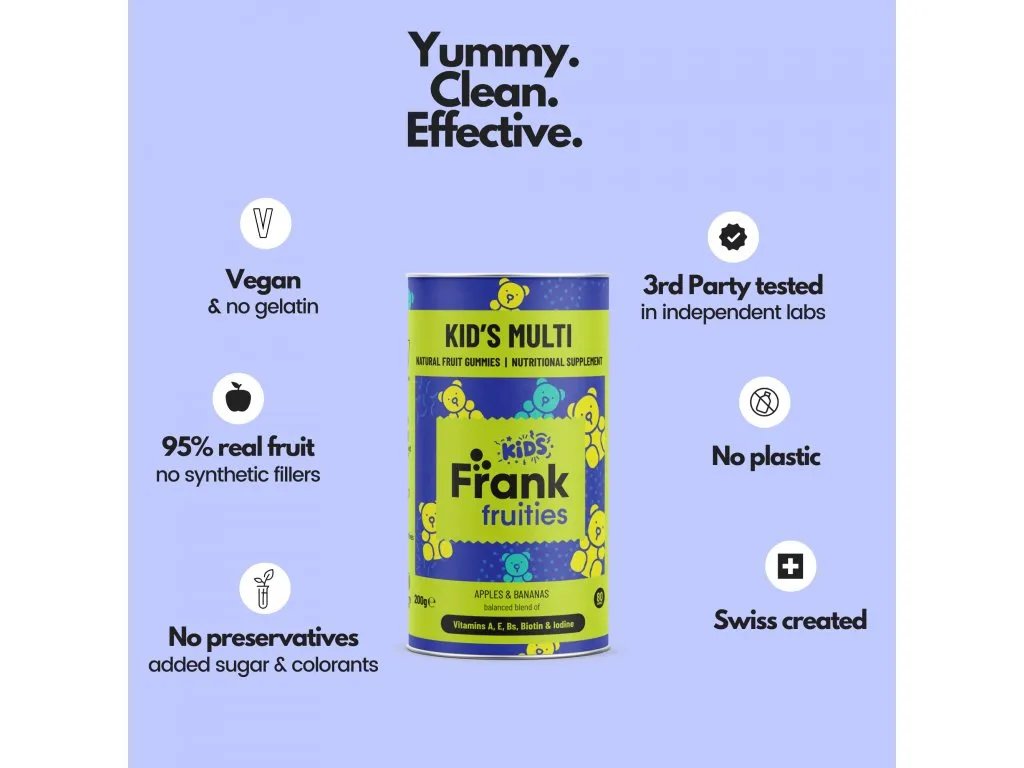 Frank fruities založila mladá švýcarská rodina na základě osobní zkušenosti poté, co si uvědomili, že vitamíny a doplňky stravy mají nedostatky. Jako rodině se jim nikdy nedařilo úplně dobrat všechny vitamíny a doplňky stravy. Zkrátka je to nebavilo, netěšili se na ně. A tak se rozhodli si vytvořit vlastí. Takové, které budou nejen funkční, ale především chutné, zábavné a snadné na užívání.