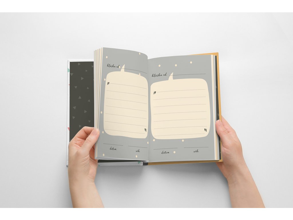 Některé okamžiky jsou tak neopakovatelné, že si zaslouží být zachyceny. Zápisník Dětské hlášky slouží právě k tomu, aby vám žádný takový moment už nikdy neuniknul. Náš dlouholetý bestseller nově vymazlený o barevnější obal a s rozšířeným počtem stran.