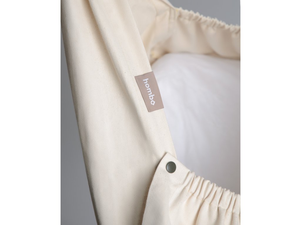 Kolébka je vyrobena z pevné 100% přírodní tkaniny a má ergonomický tvar s vyvýšenou hlavou, která pomáhá předcházet problémům s refluxem. Uvnitř kolébky homba najdete antialergickou matraci s pohankovými lusky, která je nejen antialergická, ale také masážní a antibakteriální pro dítě. Tato matrace je ideální pro denní spánek dítěte.