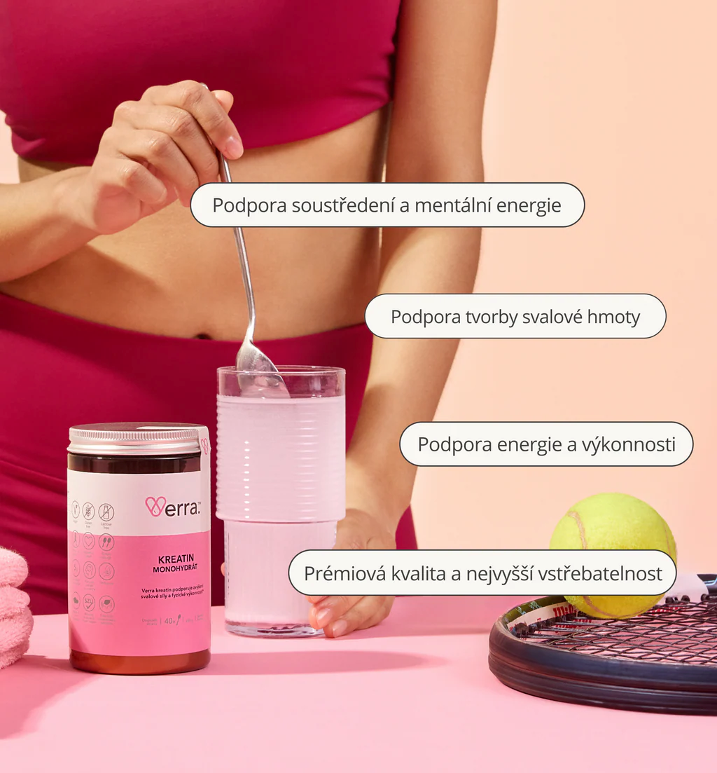 Kreatin hraje klíčovou roli při tvorbě buněčné energie (ATP), která je nezbytná pro svalovou práci. Pomáhá zvyšovat výkon při fyzické aktivitě a podporuje budování i udržení svalové hmoty. Ta je zásadní nejen pro sílu, ale i pro dlouhodobé zdraví a vitalitu.
